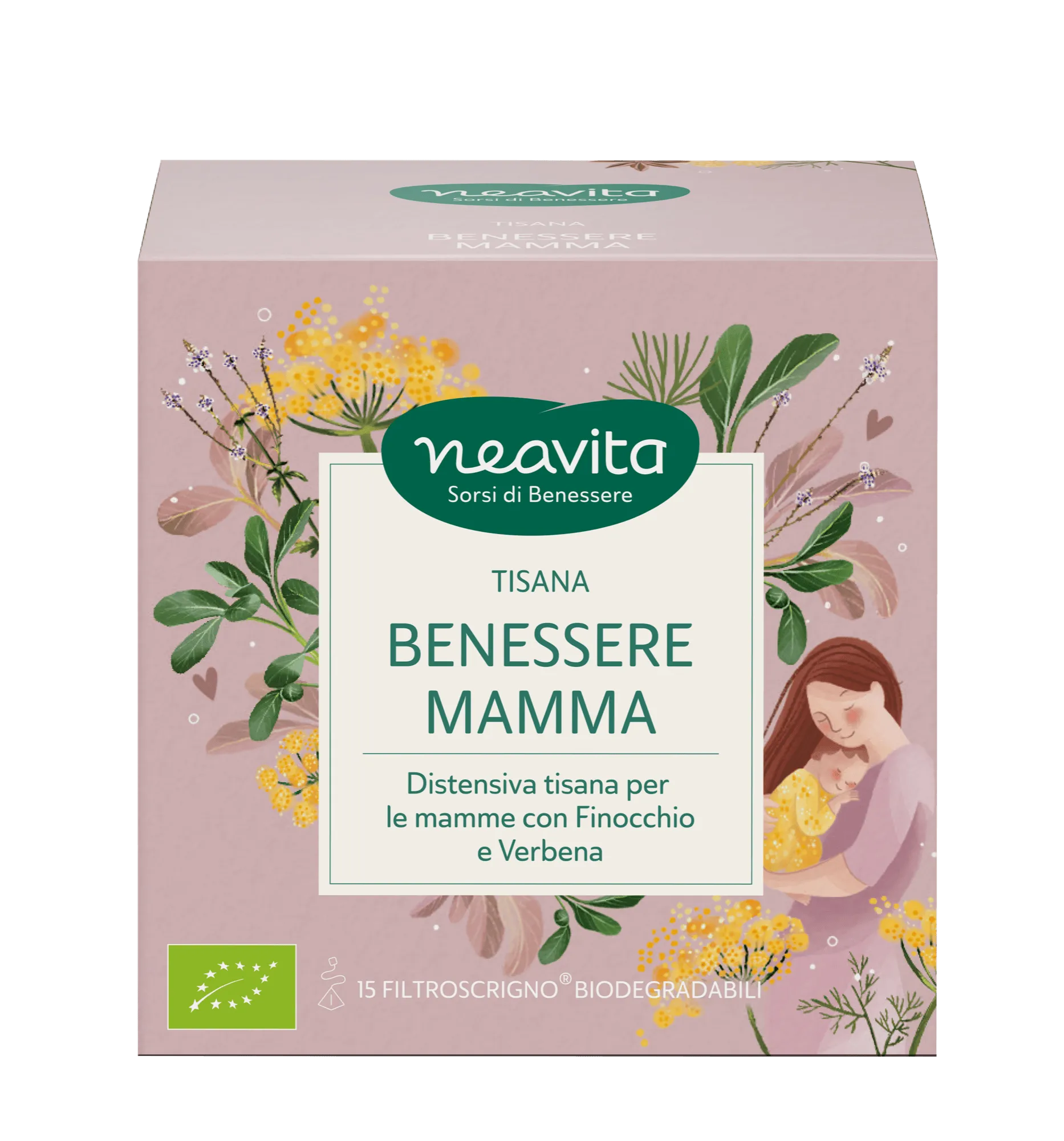 Una selezione di piante biologiche che sostiene le mamme con una tazza di dolcezza. Per un effetto rasserenante e confortante.