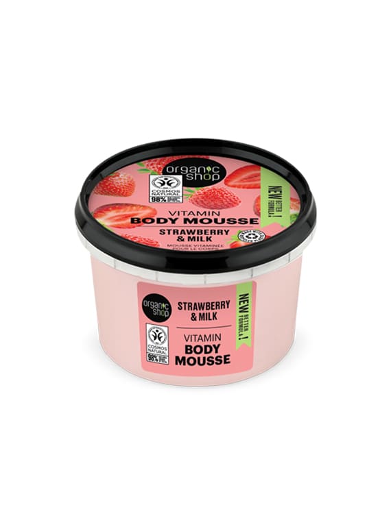 Deliziosa Mousse per il corpo a base di Estratto biologico di Fragole e Proteine del Latte.