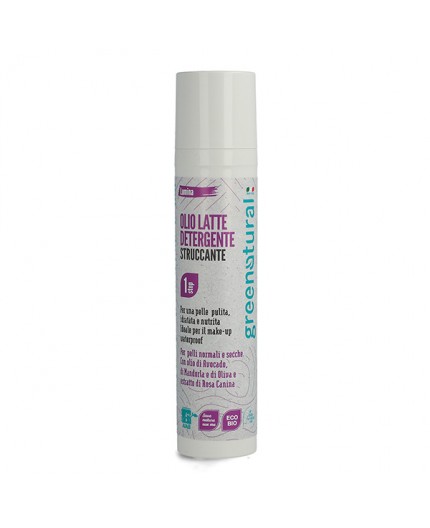 L’Olio Latte Struccante Greenatural è un detergente struccante viso arricchito con Olio extravergine di Oliva Biologico, oli di Avocado e Mandorla, preziosi alleati per mantenere il tono, l’elasticità, il nutrimento e l’idratazione della pelle.