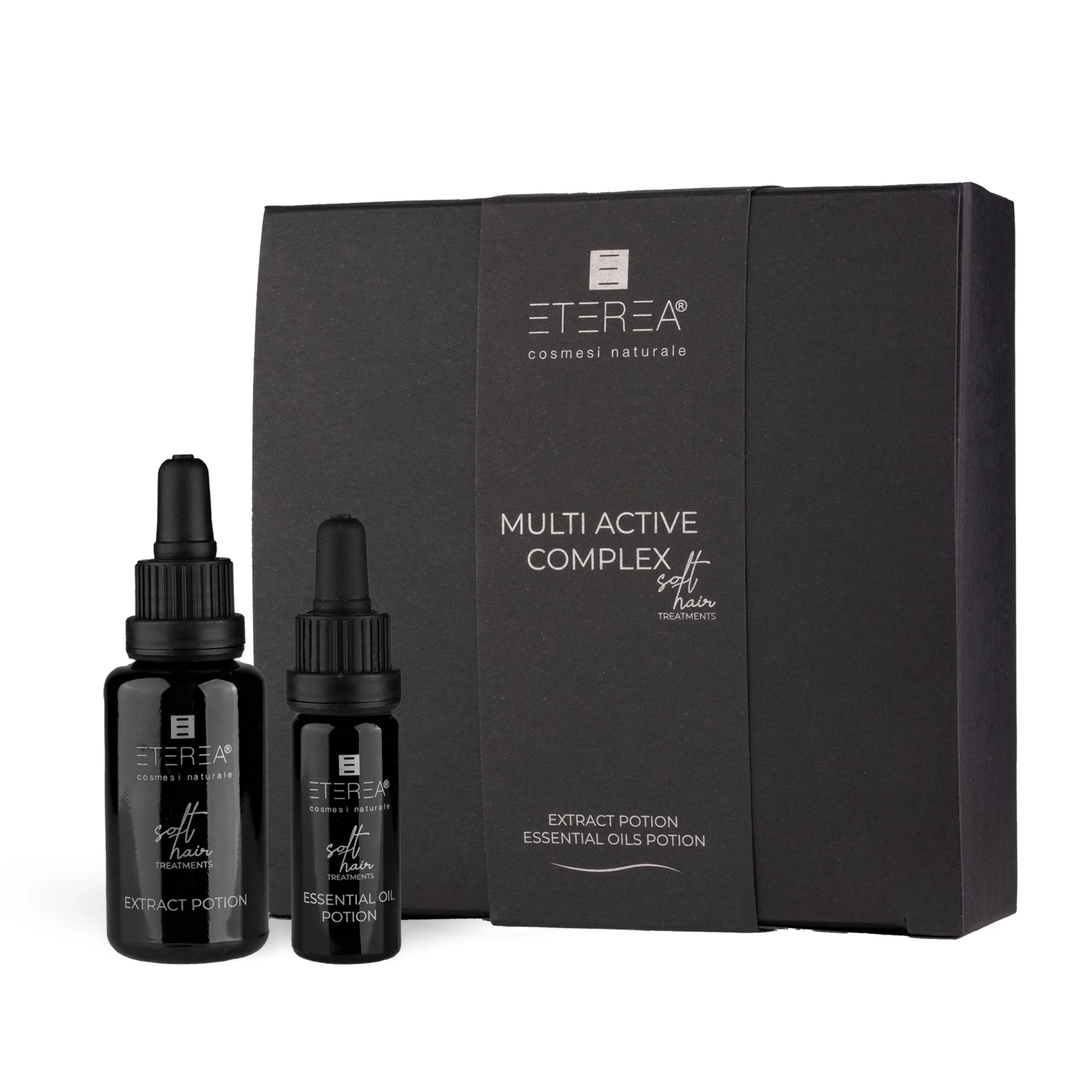 – una fase oleosa (Essential Oil Potion) composta da pregiati oli essenziali che agiscono per rinforzare il fusto, migliorare la circolazione, veicolare tutte le sostanze nutritive e purificare la cute prevenendo forfora e diradamento.